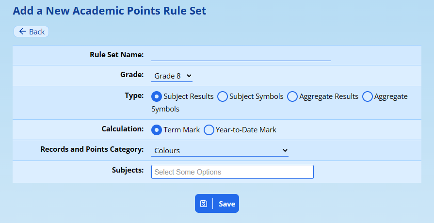 ADAM will use rule sets to determine how many points should be awarded to a pupil for either their mark or their symbol.