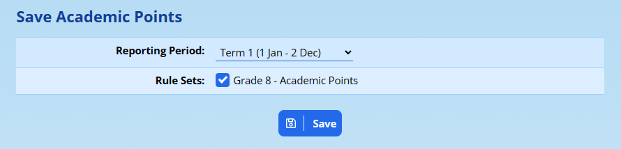 Academic Points can be displayed on a report, or they can be saved to the Records and Points module where they might be part of a larger system involving consequences that lead to other Academic Awards, for example.
