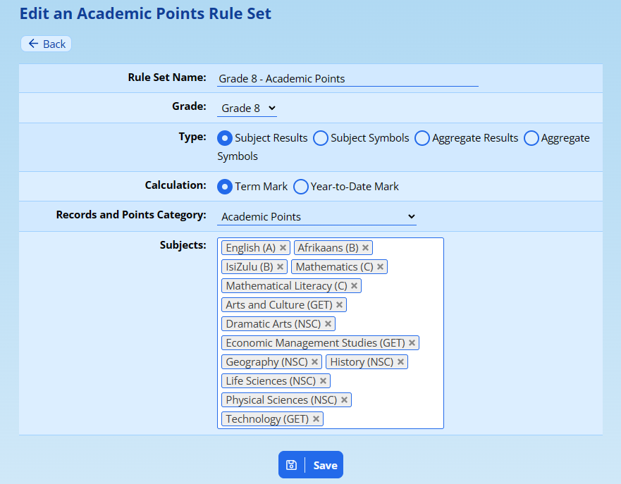 Once you are happy that your marks are finalised and that your Academic Points are accurate, you can have them recorded in the Records and Points modules for each pupil.