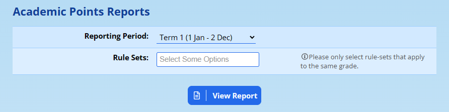 Choose the reporting period that you wish to see points from and choose one or more rule sets to determine the points to generate.