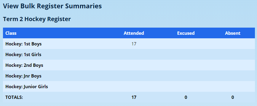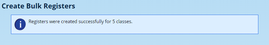Registers that were created as part of a bulk operation can be summarised together using the option on the Attendance Registers card on the Classes tab.