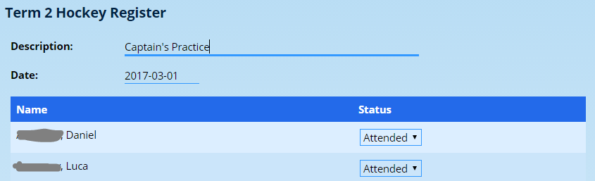 Attendance registers should not be confused with Absentees. The two functions serve fundamentally different purposes. Whereas absentees is concerned with recording an official record of whether a pupil was present during the school day, attendance registers can be used to record a multitude of other things, such as whether a pupil attended play rehearsal or rugby practice.