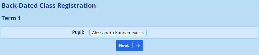 Now select the name of the pupil to register: