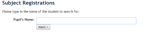 Search for the pupil you wish to enrol and click on the Next > button.