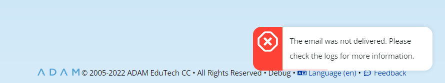 If you don’t receive the email from ADAM, you can check your junk mail or spam folder to see if it’s there. If not, you’ll have to get further help from your network support personnel who can investigate further.