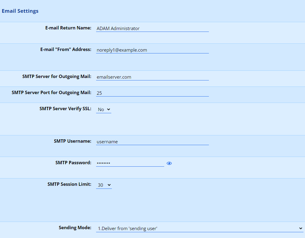 - Email From Name: give the name of the user chosen above. A good example of this would be “Example School’s ADAM”