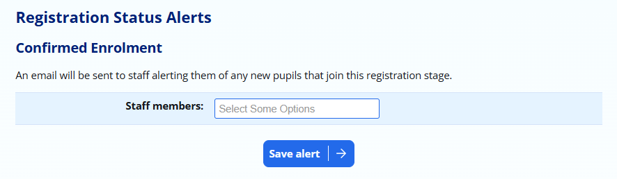 Clicking on this option allows you to select specific staff members who will be notified by ADAM whenever a pupil is added to this registration status.