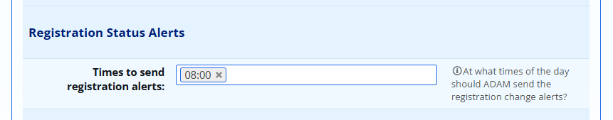 The registration status alerts are sent daily at set times. These can be configured in the Site Settings on the cron tab, under the heading Registration Status Alerts.
