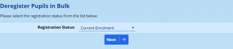 Navigate to Admissions → Enrolment Administration → Deregister pupils in bulk.