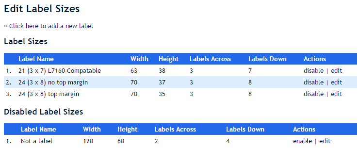 You can either edit existing labels by clicking on the “edit” option next to each one, or you can click on the disable option to remove a label from consideration for printing.