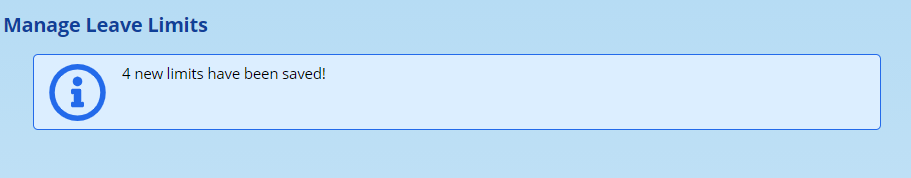 ADAM will confirm how many leave limits were saved: