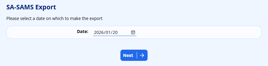 Once you have corrected as much information as you can, click on the button at the bottom of the screen to generate the SA-SAMS export.