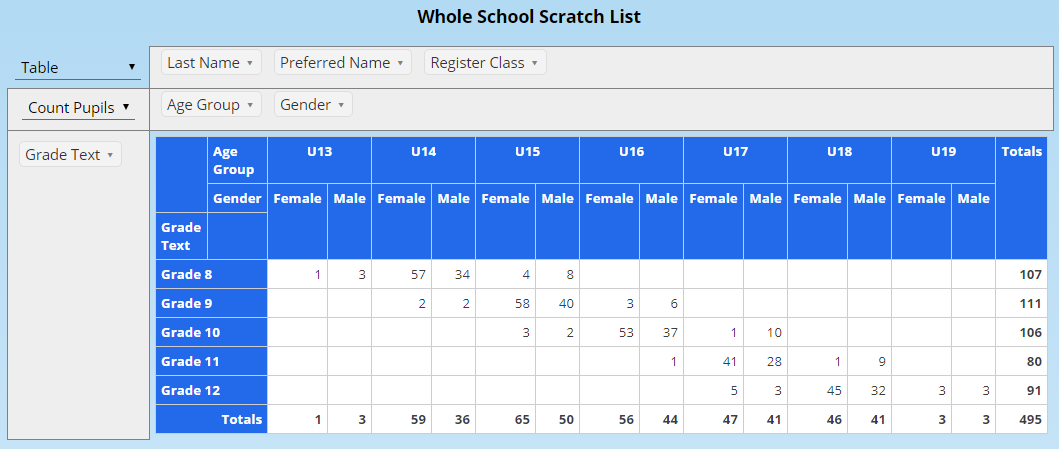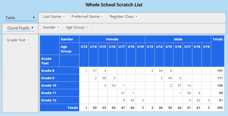 - Pupils → Scratch Lists → Age Group List or Grades → Scratch Lists → Age group lists