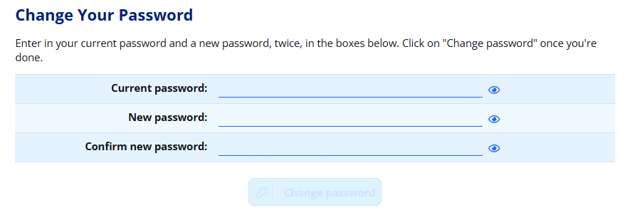Note that if the password entered does not conform to the password policy, the button will be disabled. Read more below about the password policy.